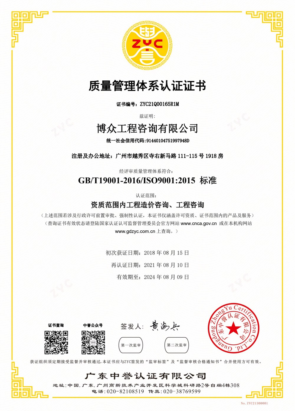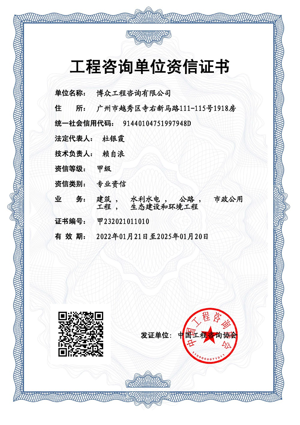 海南省誠信企業協會副會長單位博眾工程咨詢有限公司是2003年成立的一家擁有工程咨詢甲級專業資信、工程造價咨詢甲級資質、工程招標代理、政府采購代理、多項計算機軟件著作權等多種資質為一體的綜合性工程咨詢服務機構,并通過了ISO9001質量管理體系認證。自成立以來,公司遵循“專業、嚴謹、誠信、協作”的原則,積極開拓,并和多家優秀企業建立良好的合作伙伴關系,進行優勢互補,業務遍及全國各地,在廣東、廣西、湖南等地設有分公司。注冊資金5000萬元。