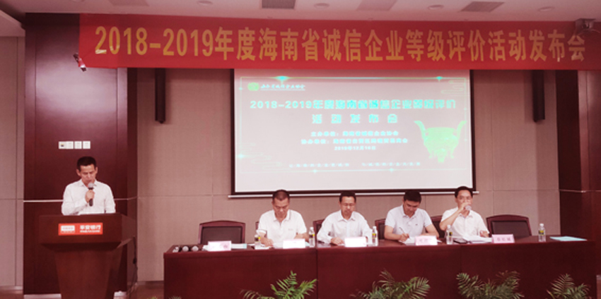 “2018-2019年度海南省誠信企業等級評價”活動發布會昨天(16號)在海口正式啟動。這一活動旨在進一步推動我省社會誠信體系建設,為海南自貿區(港)建設營造良好的營商環境,此項工作得到省政府信用主管部門的支持。