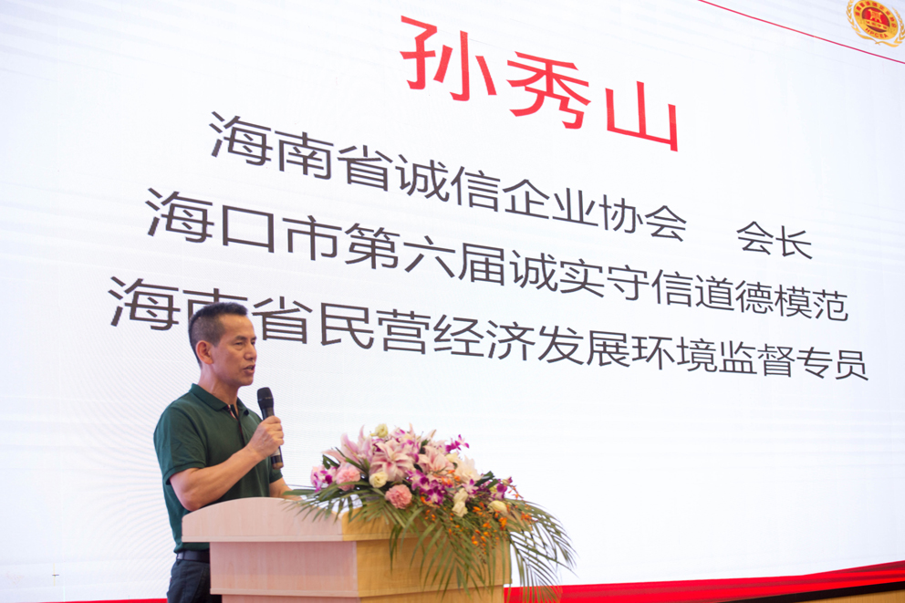 省誠信企業(yè)協(xié)會孫秀山會長為活動致辭,首先對參會來賓表示熱烈的歡迎和感謝,孫會長表示,匯聚誠信力量,共建誠信海南是我們的使命。在促進海南自貿(mào)港建設(shè)的路上,只有高度重視企業(yè)誠信建設(shè),企業(yè)才能持續(xù)健康發(fā)展。省誠信企業(yè)協(xié)會將繼續(xù)保持初心,大力營造守信氛圍,為打造“誠信新海南”不懈努力。