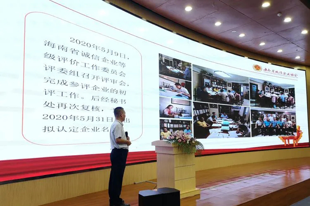 海南省誠信企業(yè)協(xié)會評價工作委員會蔡澤進主任對評價活動過程進行了介紹。