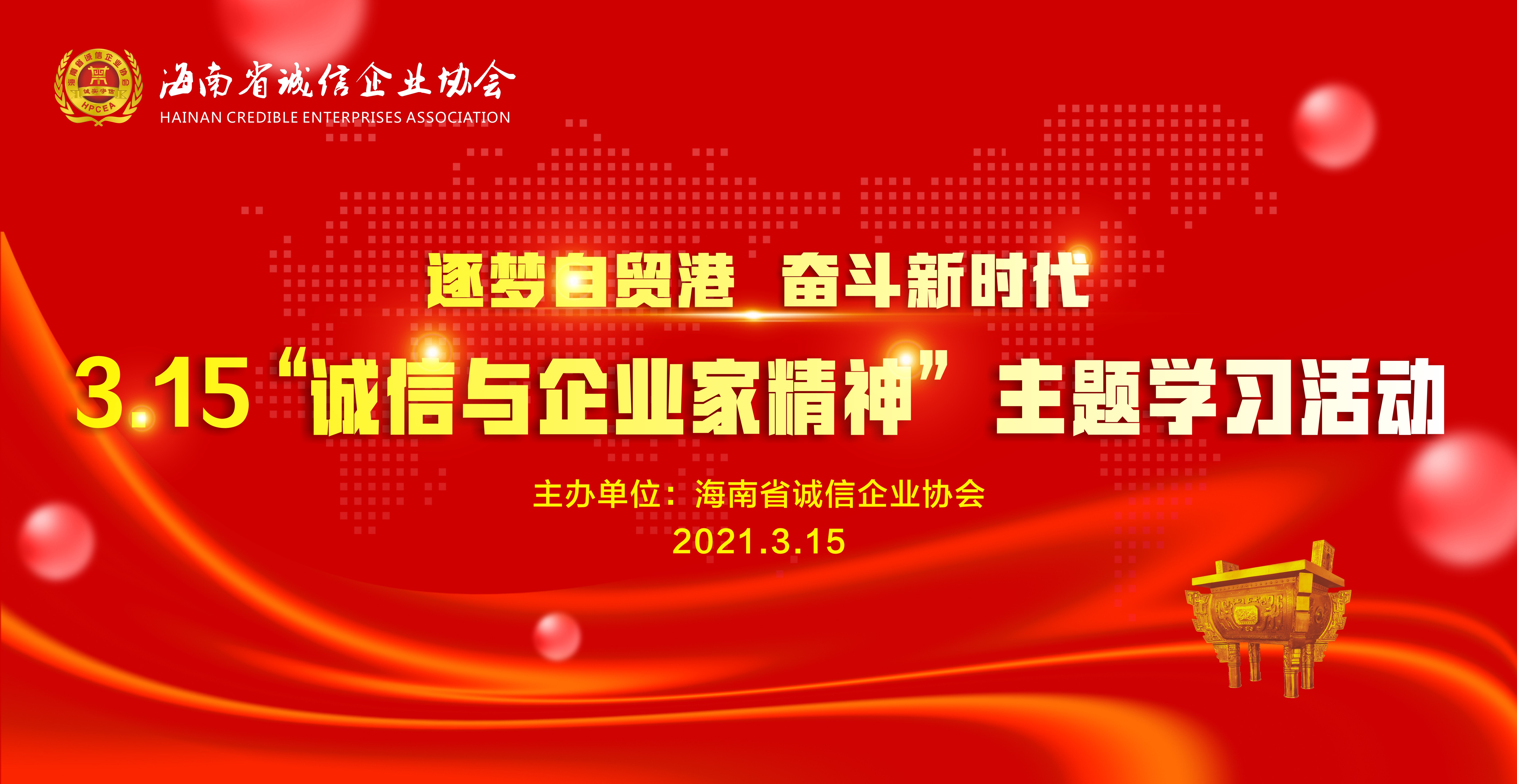 3月15日,由海南省誠信企業協會主辦的逐夢自貿港、奮斗新時代—315“誠信與企業家精神”主題學習活動在海口賽侖吉地酒店隆重舉行,活動特邀勵志教育專家、瓊臺師范學院客座教授符江老師和海南省新聞工作者協會副主席、中國蘇軾研究學會副秘書長李公羽做主題演講。