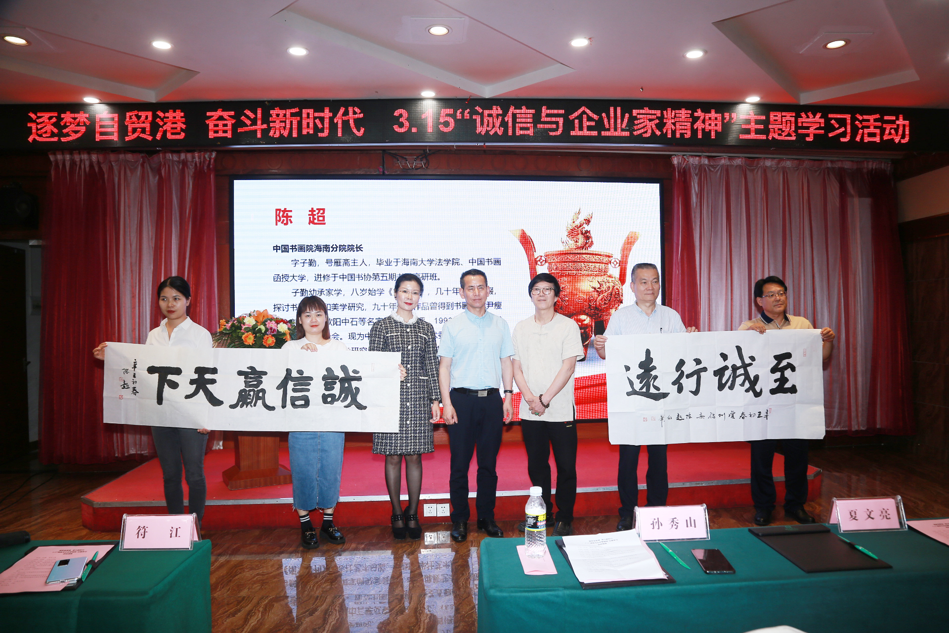 活動最后,中國書畫院海南分院院長陳超為活動獻上了墨寶,“至誠行遠”、“誠信贏天下”,相信這不僅僅是對海南省誠信企業協會的祝福,更是激勵。