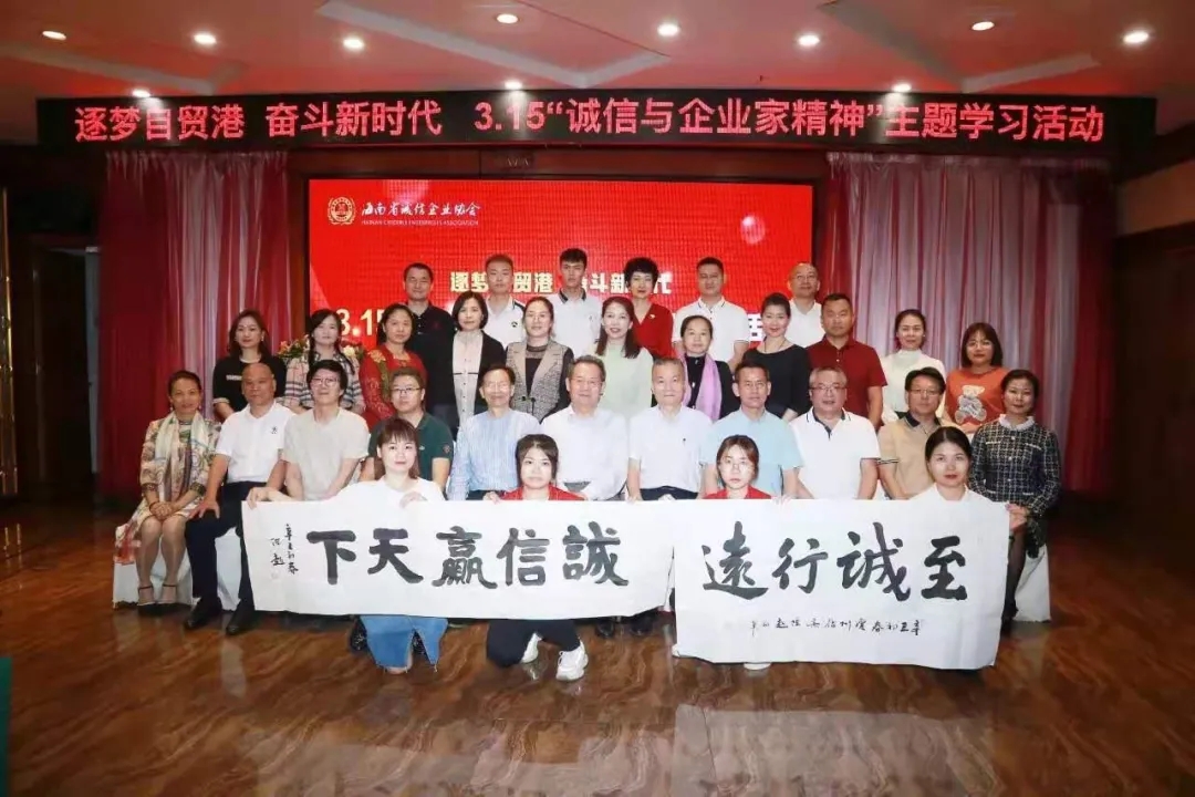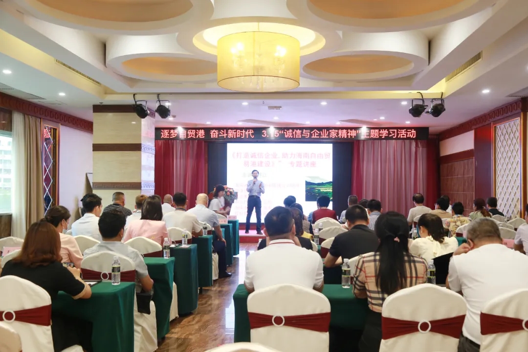 ●3月15日,由海南省誠信企業協會主辦的逐夢自貿港、奮斗新時代—315“誠信與企業家精神”主題學習活動在海口舉行,活動特邀勵志教育專家、瓊臺師范學院客座教授符江老師和海南省新聞工作者協會副主席、中國蘇軾研究學會副秘書長李公羽做主題演講。海南省誠信企業協會顧問原省工商局副局長夏文亮、原省工商局市場規范管理處處長蔡澤進等,省工商聯經聯處副處長易樂,中國書畫院海南分院院長陳超,海南省誠信企業協會協會會長孫秀山、監事長談德榮、秘書長傅姝暢,副會長周勤富、伍健超、王關美、蔡祥等,海南省冷鏈物流協會會長王鴻駿、海南省房地產產業協會秘書長黎一放、海南省企業管理協會秘書長何永勝等商協會領導及會員企業家等,共計70余人參加活動。
