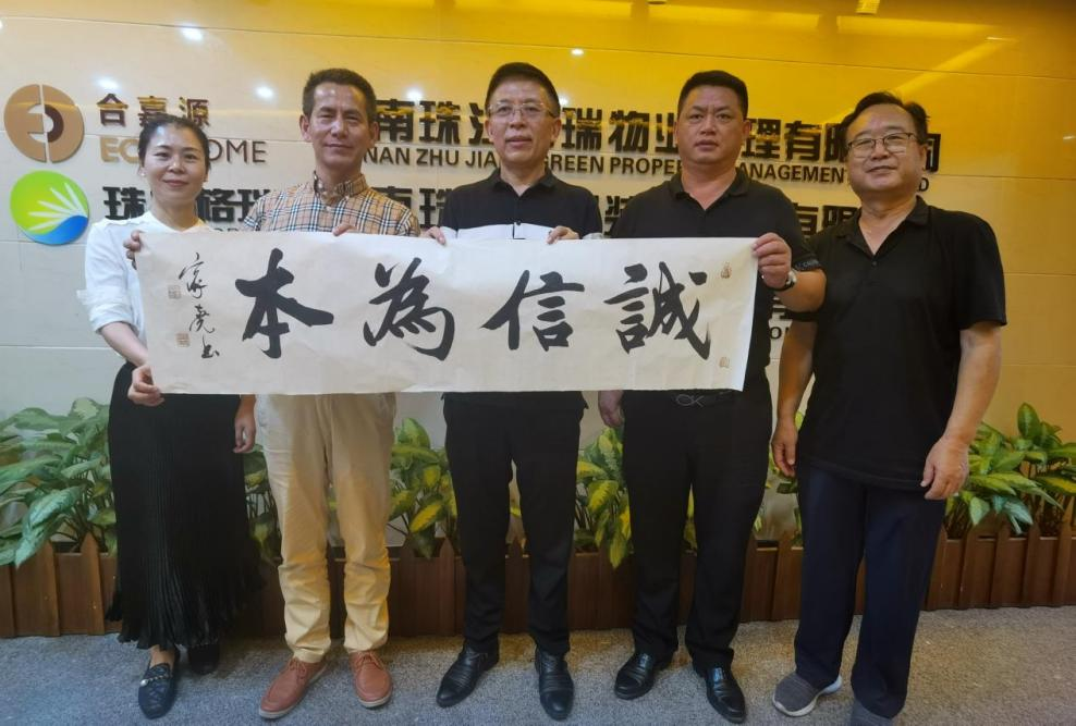 2021年4月27日上午,海南省誠信企業協會會長孫秀山,率領副會長萬金維、副秘書長王冠雲、郭春喜一行,走訪了協會副會長單位、省級誠信示范企業——海南珠江格瑞物業萬昌鑫董事長(四川商會會長)。在熱情友好的交流中,孫會長提出了“誠信利他”的亮點,要讓誠信感召天下。萬董表示非常贊同,還建議協會要在高端的物業小區,投放一定數量的宣傳櫥窗,可在珠江格瑞管理的小區先行制作安裝。孫會長對萬董的建議表示非常感謝,并盡快落地實施。本次走訪結束前,孫秀山會長贈送萬昌鑫副會長“誠信為本”字畫一幅,并合影·留念。