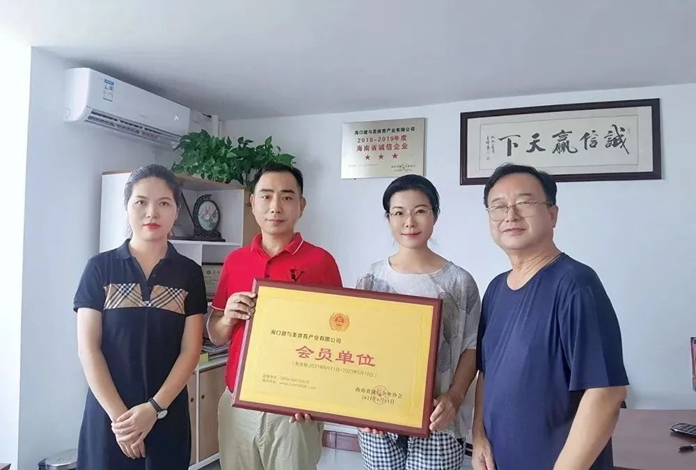 協會秘書長傅姝暢、副秘書長郭春喜一行走訪海南健與美體育產業有限公司肖華萍老總,了解會員需求,秘書長親自為肖總頒發會員牌匾。