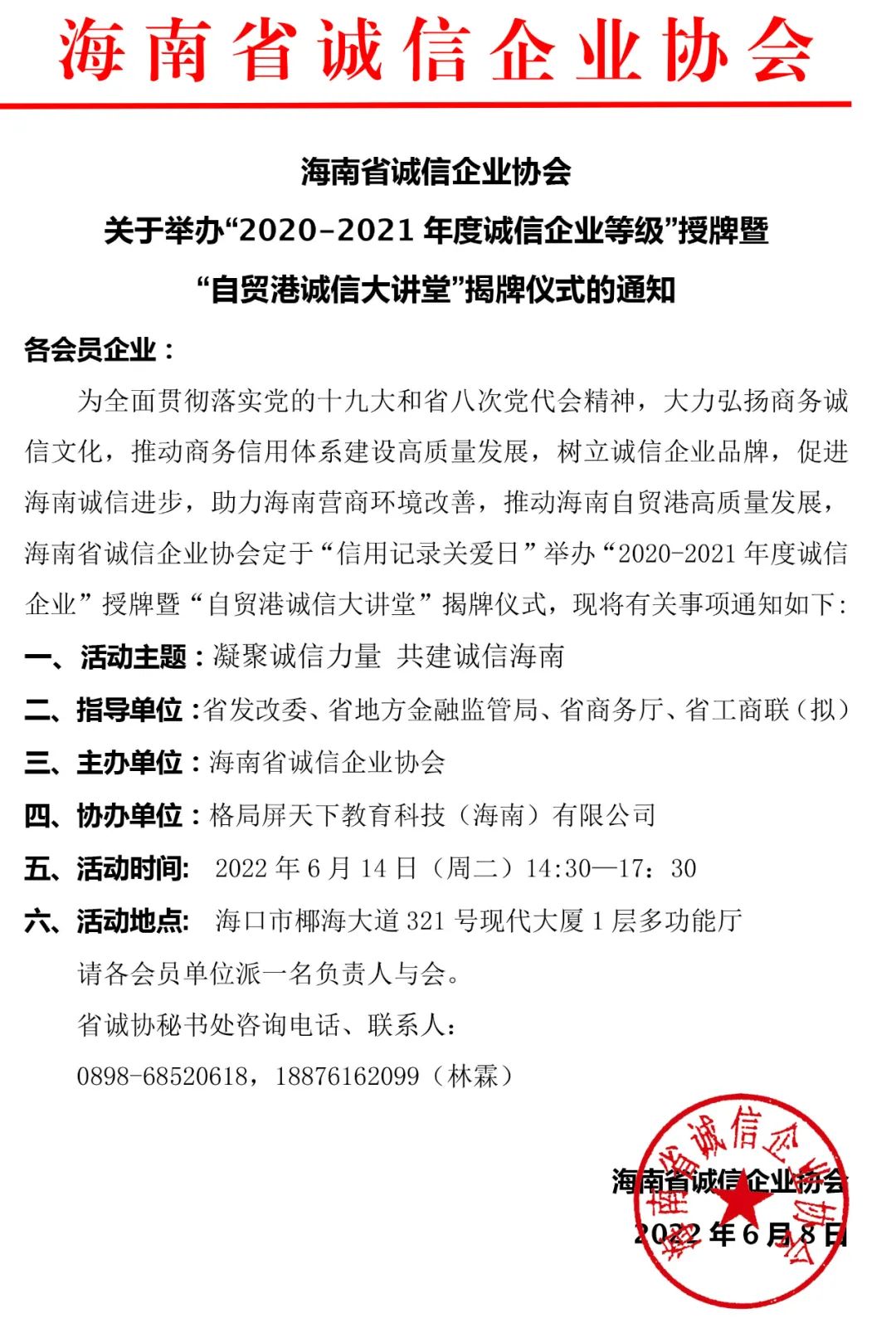 主管單位 : 海南省營商環(huán)境建設(shè)廳 承辦單位 :海南省誠信企業(yè)協(xié)會(huì)