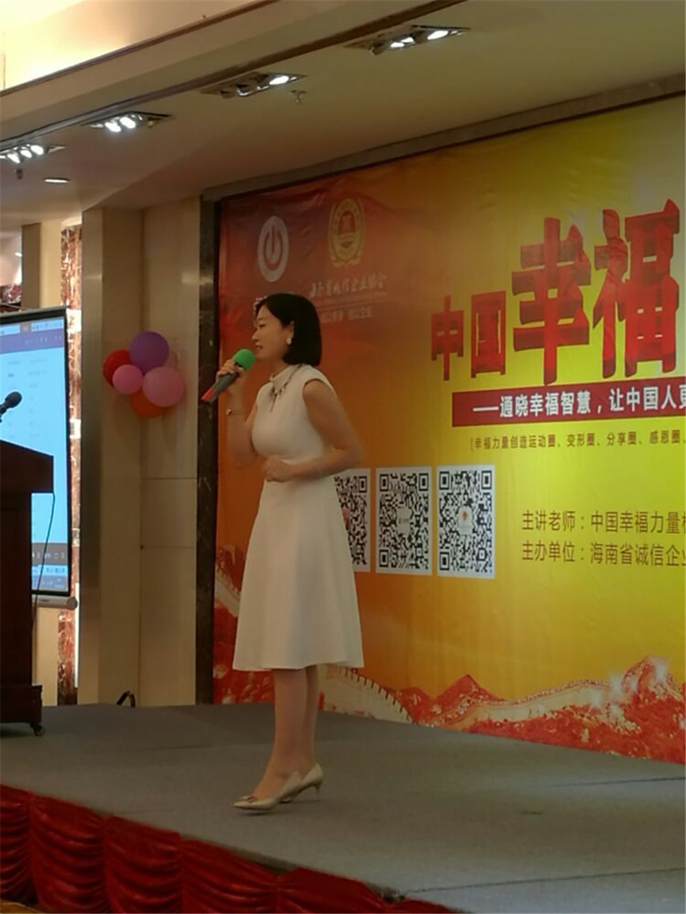 海南誠協(xié)蘇麗娜會長上臺致辭,分享誠信與幸福理念,感謝李念老師的大愛奉獻,對海南誠協(xié)發(fā)展進行規(guī)劃,同時誠協(xié)也將奉獻更多的公益課程回饋社會。
