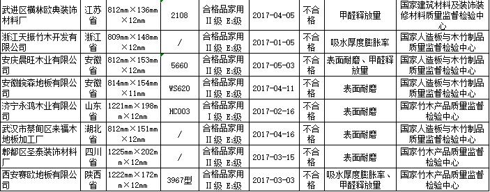 浸漬紙層壓木質(zhì)地板產(chǎn)品質(zhì)量國家監(jiān)督抽查產(chǎn)品及其企業(yè)名單