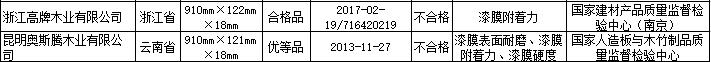 實木地板產(chǎn)品共抽查了80批次產(chǎn)品,浙江高牌木業(yè)有限公司、昆明奧斯騰木業(yè)有限公司兩家企業(yè)的2批次產(chǎn)品不符合標(biāo)準(zhǔn)規(guī)定,不合格項目涉及漆膜表面耐磨、漆膜附著力、漆膜硬度。