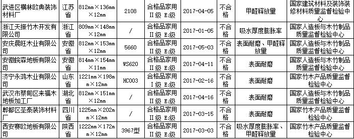 實木地板產(chǎn)品質(zhì)量國家監(jiān)督抽查產(chǎn)品及其企業(yè)名單
